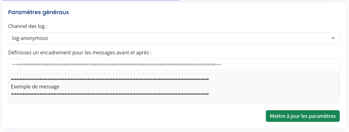 Channel de logs & encadrement des messages