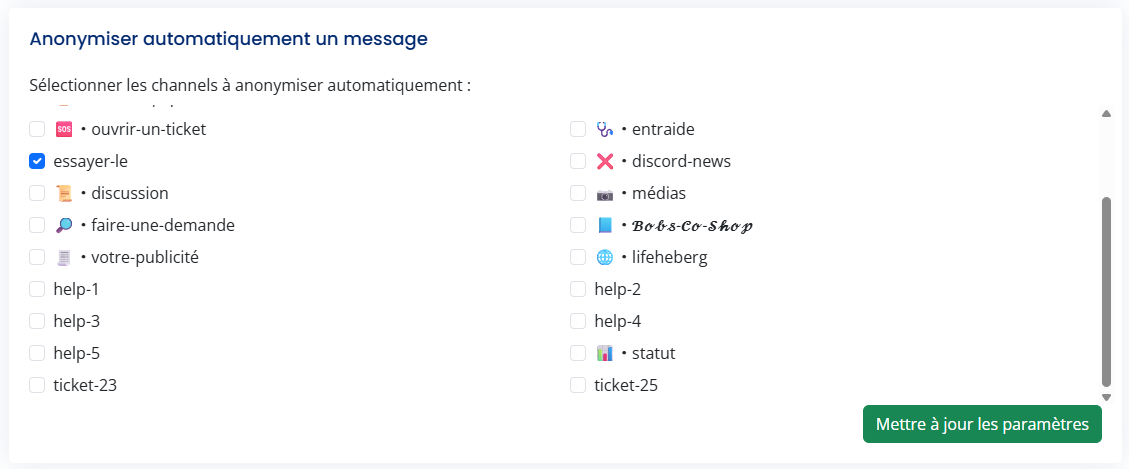 Cette fonctionnalité permet de masquer automatiquement les messages envoyés par le bot dans les channels de votre choix.