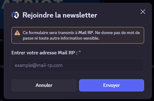 Sur le discord du serveur où vous êtes présents, vous pourrez également rejoindre une newsletter directement depuis un formulaire :